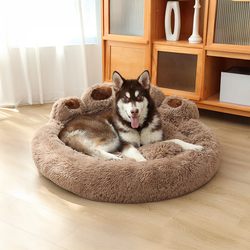 15 anmeldelser af Stor anti-angst rund fluffy hundeseng beroligende kæledyrshule med høje sider