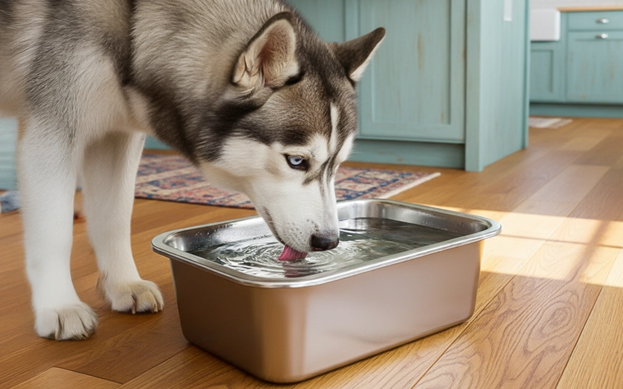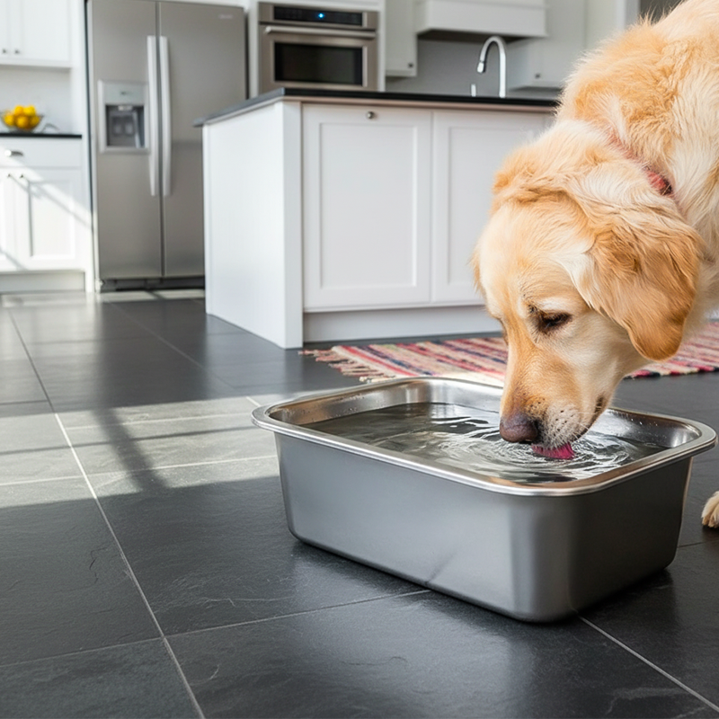 Vores schæferhund drikker meget, og denne holder hende tilfreds. Jeg kan godt lide, hvordan den ser ud på køkkengulvet, ordentlig og blank.