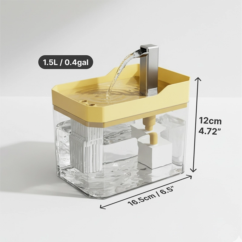Flerlagsfiltrering fjerner nemt støv og små partikler. Kæledyr får frisk, ren drikke hver gang.