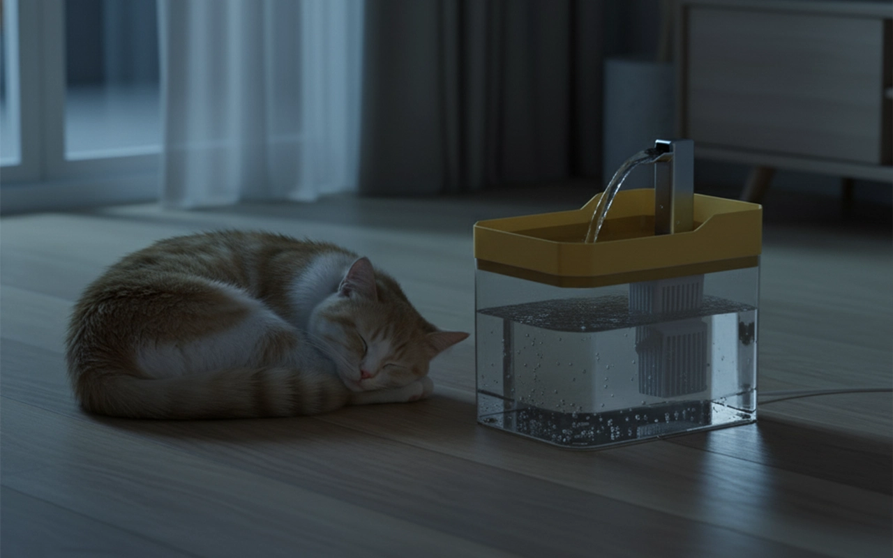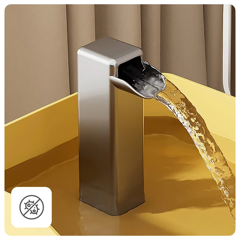 Elsker fontænens design! Den blide lyd af vand er virkelig beroligende, og min kat bruger den hver dag.