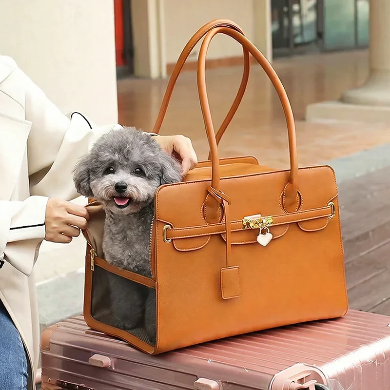 Læder Hundetaske Håndtaske Elegant Kæledyrs Rejsetaske
