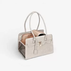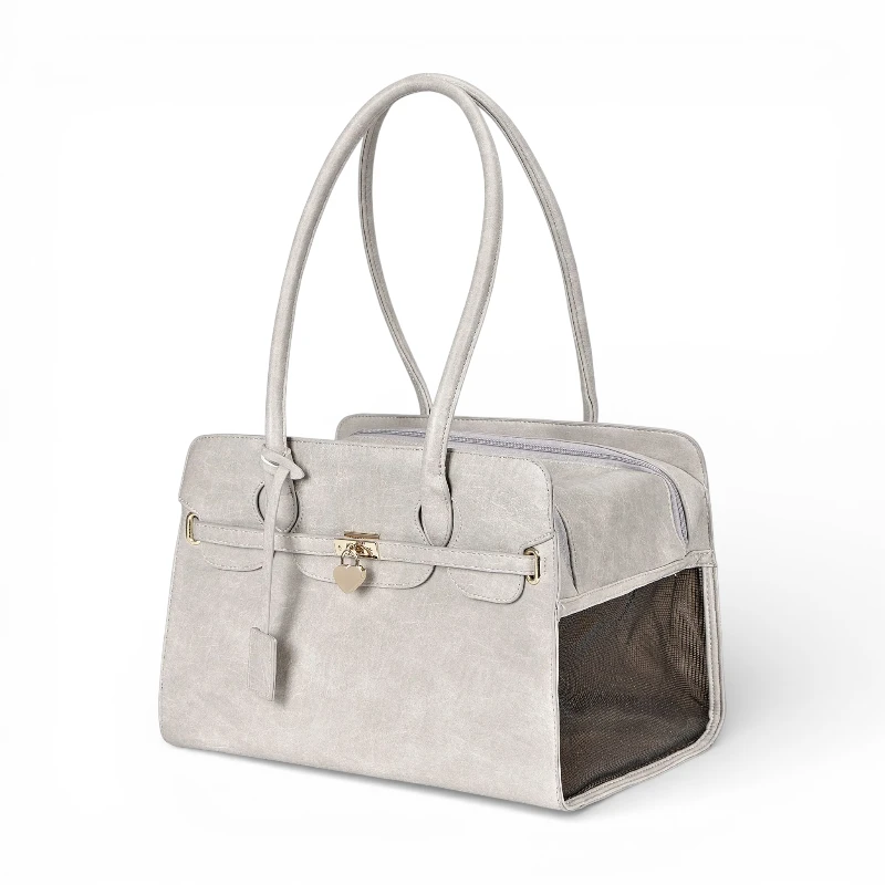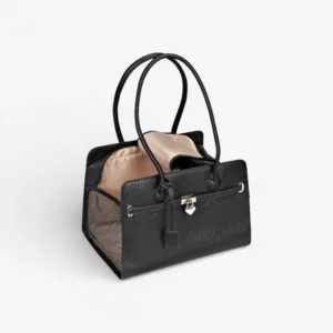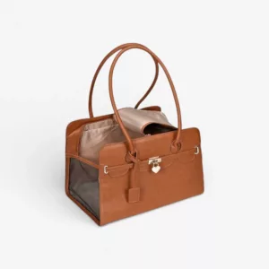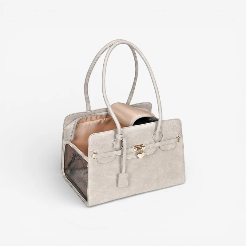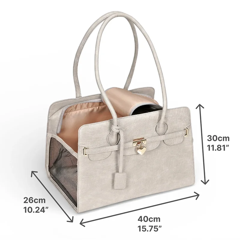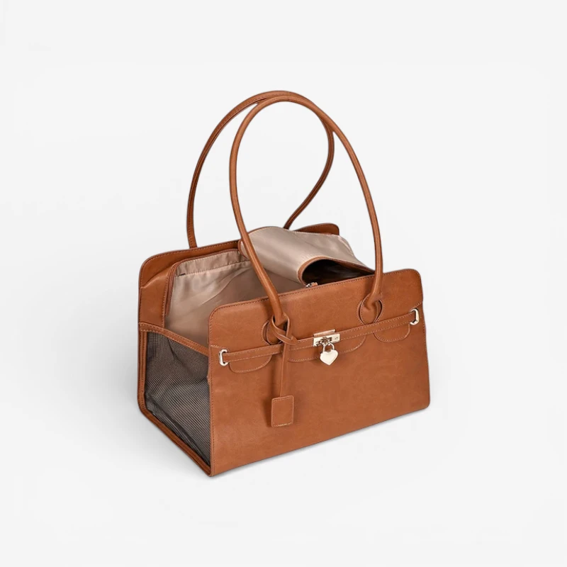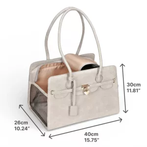 Denne taske er elegant og robust. Min hund passer perfekt og bliver slet ikke mast. Håndtagene gør det nemt at holde den, når jeg shopper.