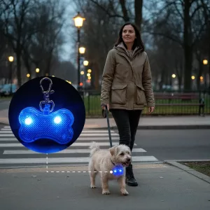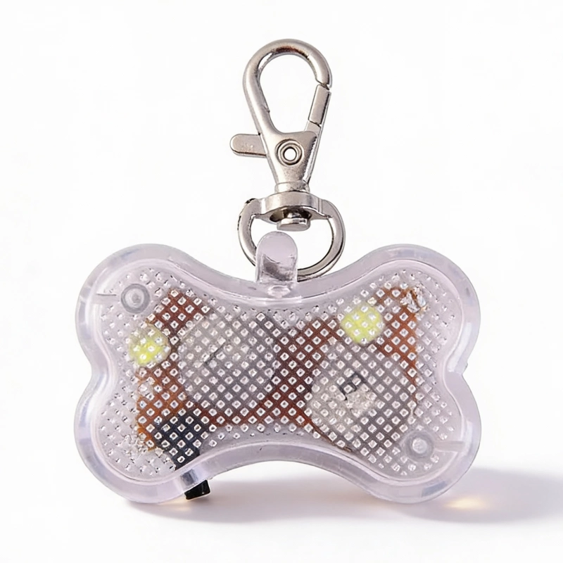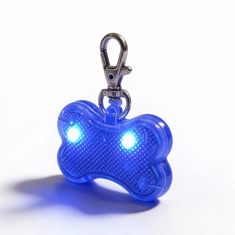 Dette knoglevedhæng er fantastisk til vores aftenture. Min hund er synlig, og det er super nemt at ændre lysfarven. Elsker clipen—falder aldrig af!