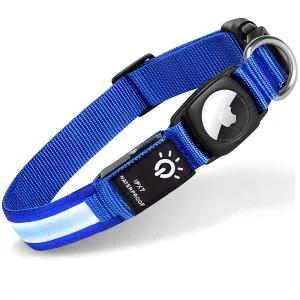 Dette lysende halsbånd har gjort gåture om natten meget bedre! Jeg kan altid se min hund, og at vide, at hendes AirTag er sikker, er en kæmpe lettelse.