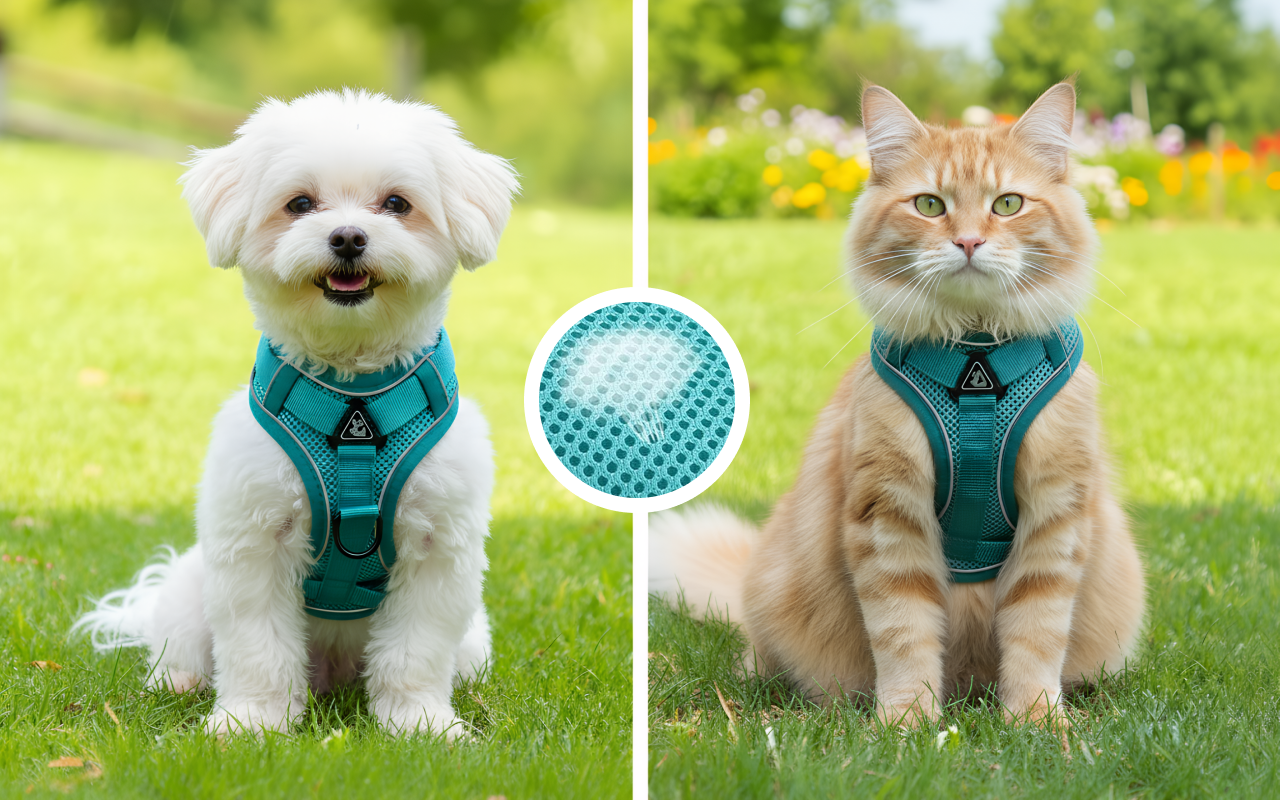 Åndbart stof holder kæledyr kølige under alle aktiviteter udendørs. Justerbare stropper sikrer en perfekt pasform til både katte og hunde.