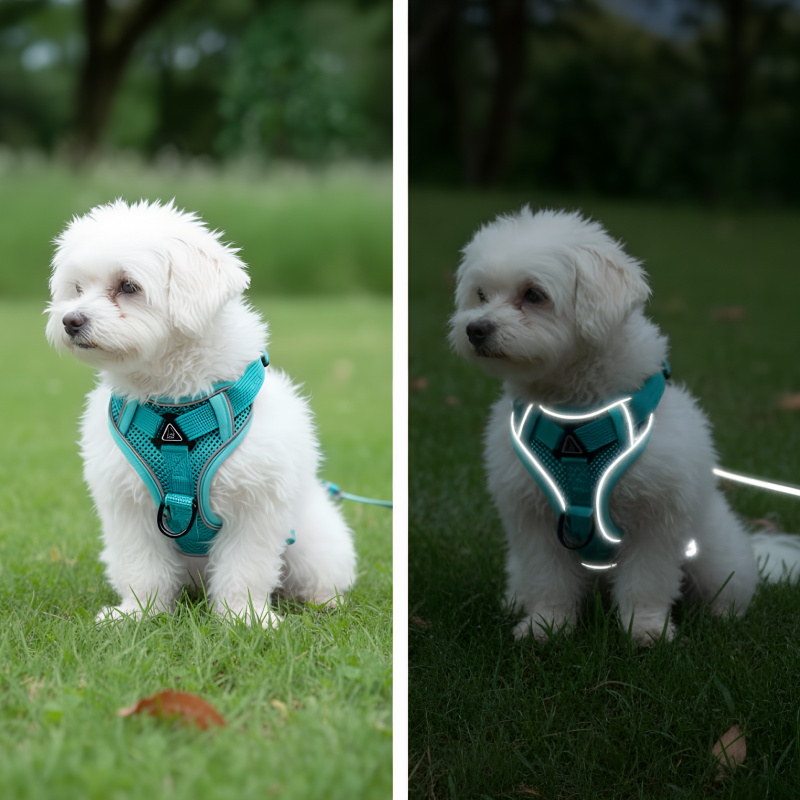 Reflekterende syninger hjælper kæledyr med at være synlige efter solnedgang. Stærke spænder giver ro i sindet, uanset hvor eventyrene fører hen.