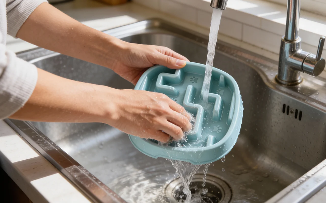Min golden spiser så meget langsommere med denne skål! Ikke mere rod på gulvet, og hun virker faktisk gladere under måltiderne nu. Virkelig nem at gøre ren også.