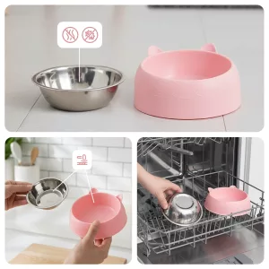 Aftagelig stålsats gør det let og hurtigt at vaske. Frisk mad og vand er altid klar til dit kæledyr.
