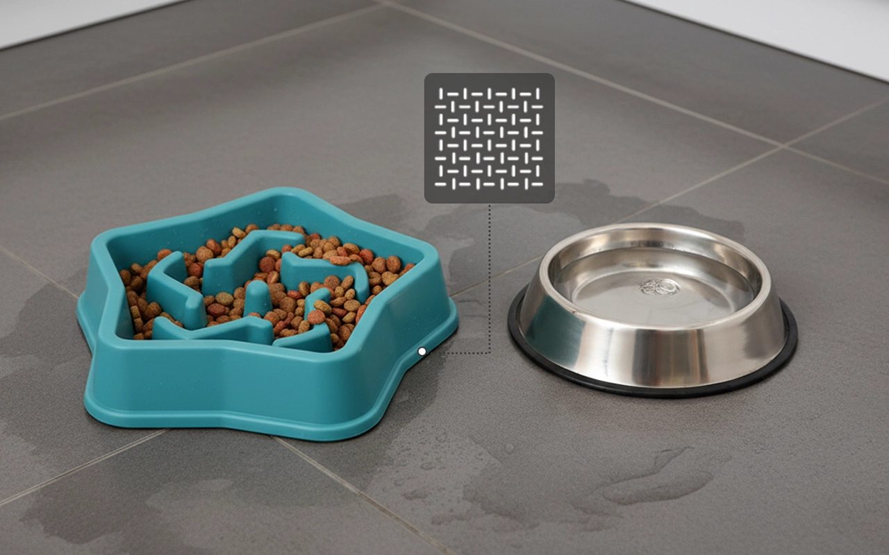 Gummipuder forhindrer glid og holder skålen stabil. Gulvene forbliver rene, og ridser efter hvert måltid minimeres.