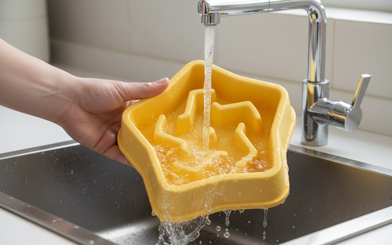 Min hund elsker denne skål! Måltiderne tager længere tid og det hjælper hans fordøjelse. Jeg smider den i opvaskemaskinen bagefter, og den er helt ren. Super nemt.