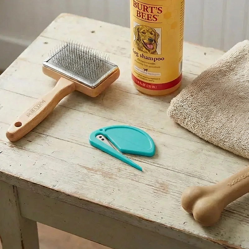 Du behøver ikke længere at trække eller børste hårdt i sammenfiltrede områder. Det blide blad glider let gennem filtrede pletter og holder din pelsede ven afslappet.