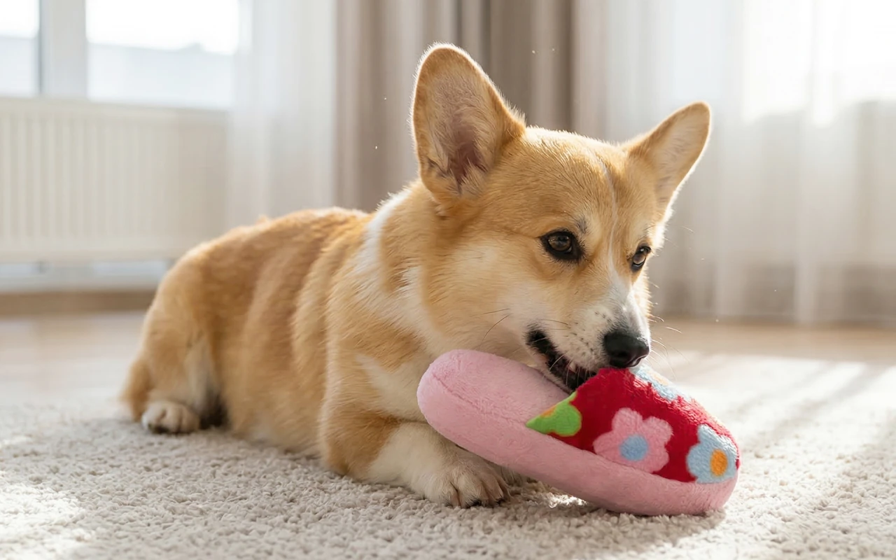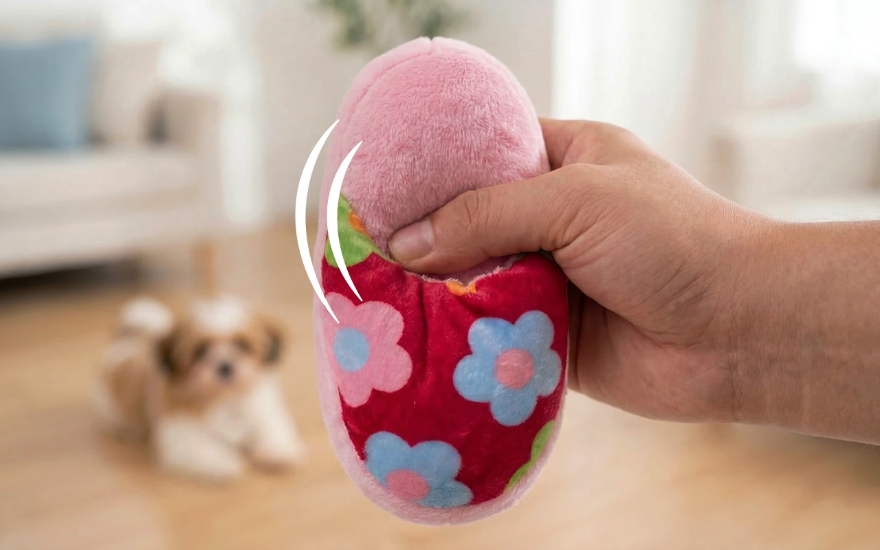 Hunde fokuserer på at tygge på Primdog plyssutskoen og lader sko og møbler være i fred. Sunde måder at bruge energi på mindsker destruktiv adfærd indendørs.