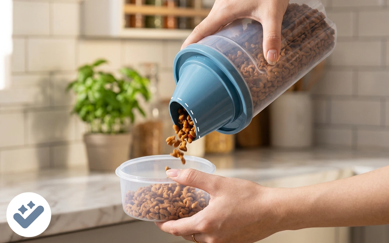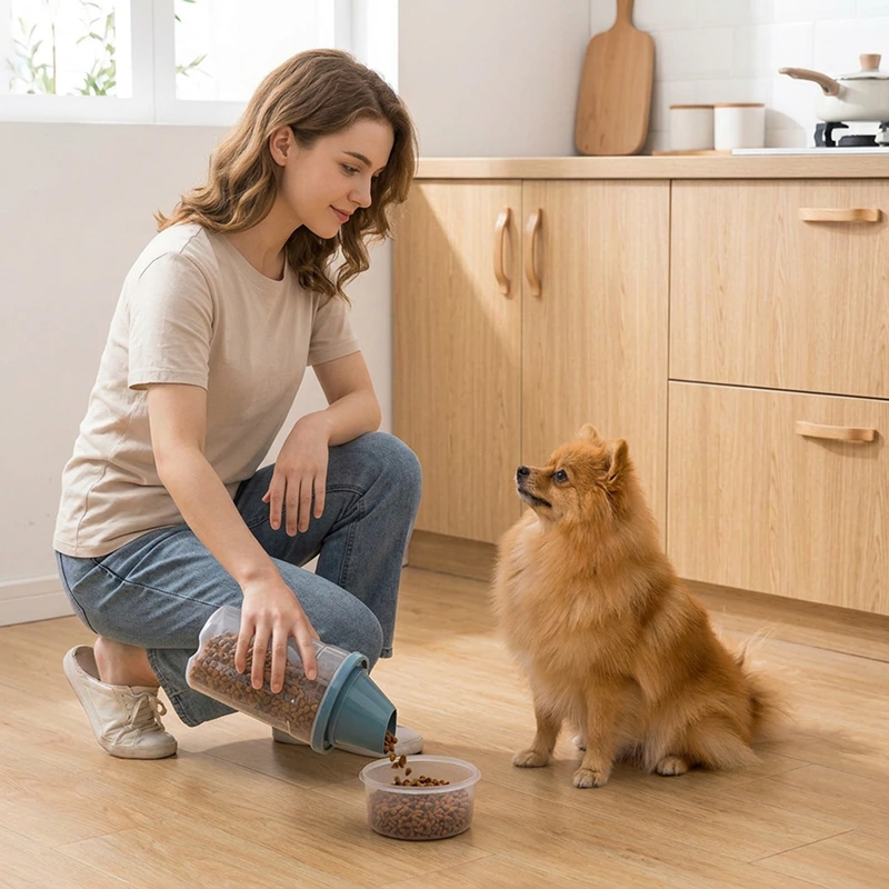 Et tæt låg beskytter maden mod fugt, så hver bid forbliver sprød. Dit kæledyr får sunde måltider uden spild eller fugt.