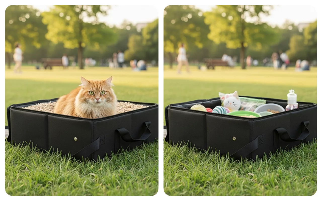 At forlade hjemmet behøver ikke betyde ekstra rod eller besvær. Primdogs kattebakke giver kæledyret et rent sted med det samme. De fleksible sider foldes fladt og sparer plads overalt. Nyd ture uden bekymring for uheld eller lugte.