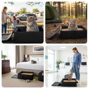 portable litter box, folding litter box, cat litter box, waterproof litter box
