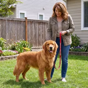 Elsker denne line! Den lyse røde farve skiller sig virkelig ud, og håndtaget føles behageligt selv på vores længste gåture. Jeg føler, at min hvalp er tryg hos mig.