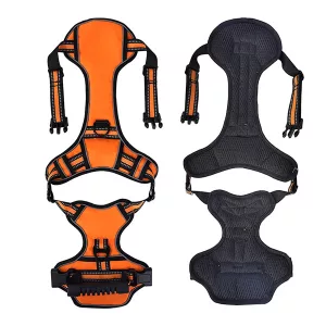 Vores sele har to ringe – én foran og én bagpå. Det hjælper med at reducere trykket på hundens hals og forhindrer kvælning eller overanstrengelse.