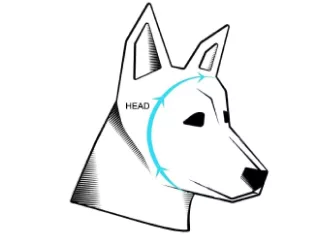 - Sno målebåndet horisontalt rundt om din hunds hoved, lige ved øjnene.