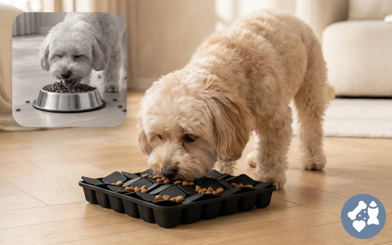 Kæledyr tager mindre bidder, hvilket forhindrer farlig slugning eller uheld. Langsommere spisning betyder mindre risiko for ondt i maven efter fodring.