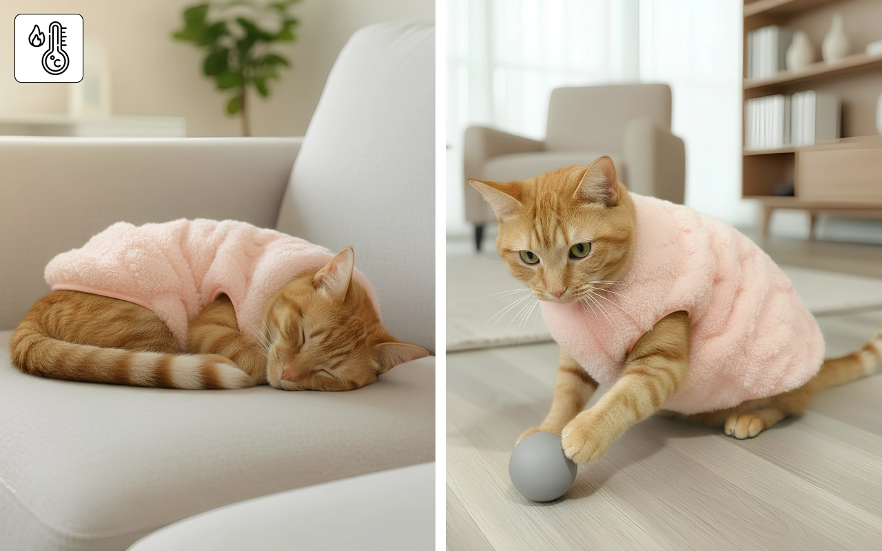 Blødt stof forhindrer kløe, mens kæledyret har en Primdog sweater på. Din kat kan bevæge sig nemt uden begrænsning eller stress.