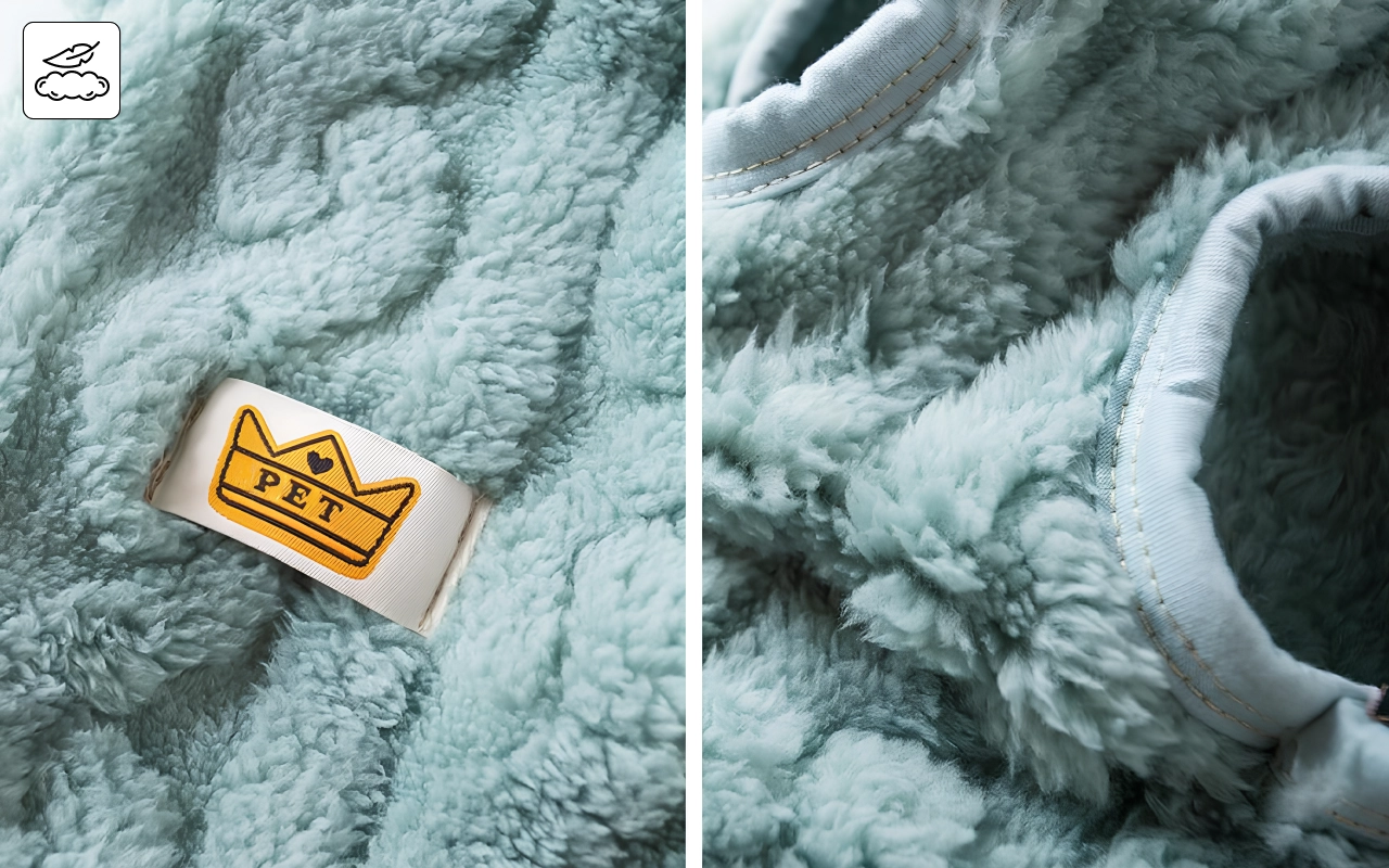 Tykt fleece holder på varmen, så kæledyret aldrig fryser. Komforten varer hele dagen, uanset om man slapper af eller leger.
