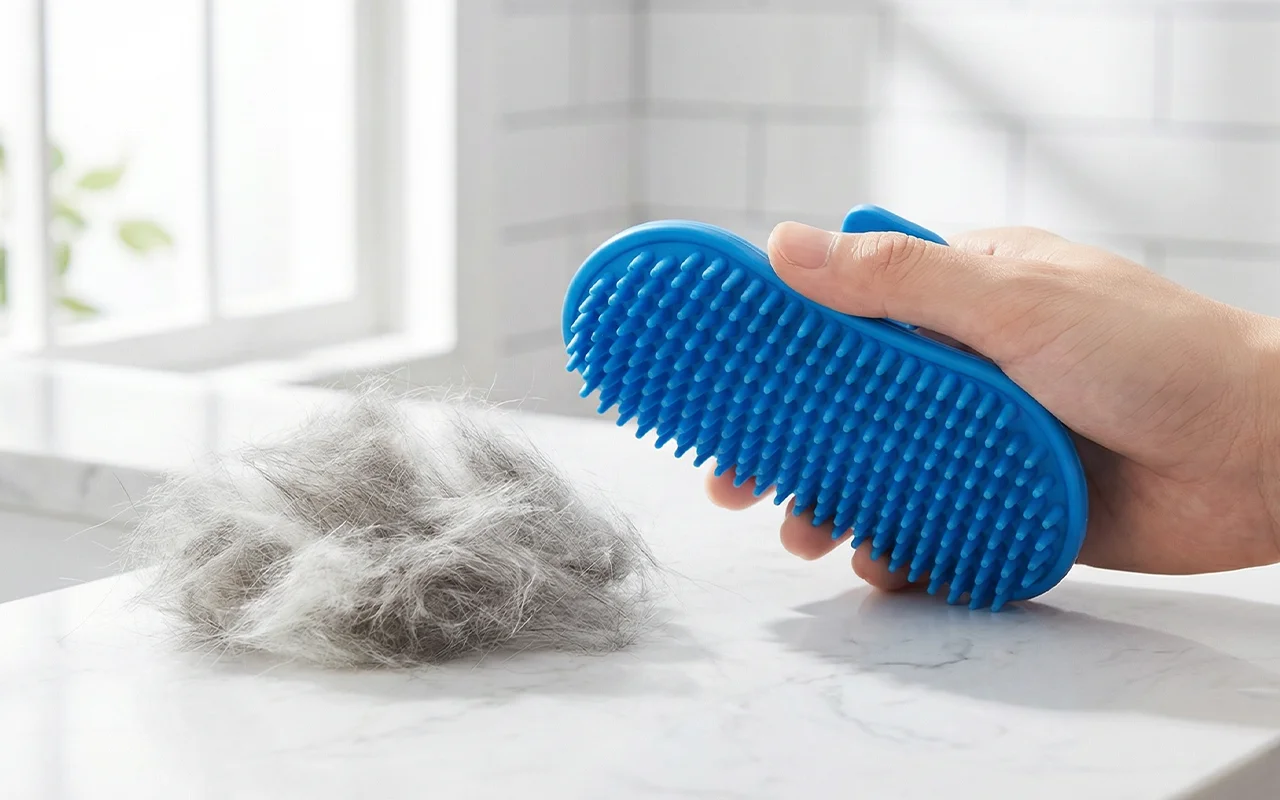 Små gummidutter beroliger huden under vask og lindrer spændinger nænsomt. Kæledyr får ekstra forkælelse og badet bliver en hyggestund.
