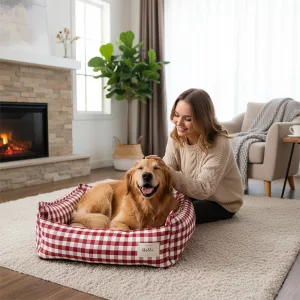 Blød hundeseng med høje sider og aftageligt betræk