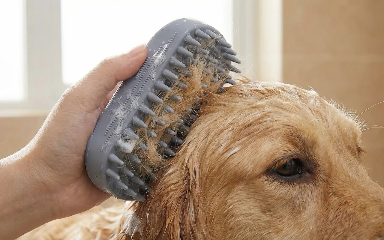 dog bath brush, dog bath scrubber, dog shower brush