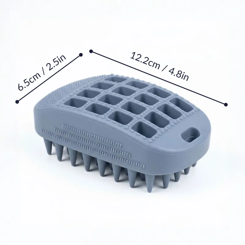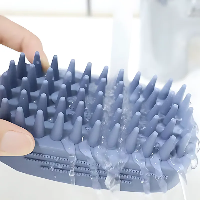 Jeg købte denne børste til min seniorhund. De bløde silikonebørster ridser ikke hans tyndere pels, og min hånd får ikke krampe, mens jeg vasker ham.
