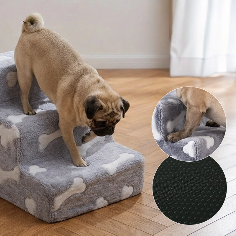 Blødt skum polstrer hvert trin og mindsker belastningen på sarte lemmer. Ømme eller ældre kæledyr bevæger sig frit uden risiko for skade eller ubehag.