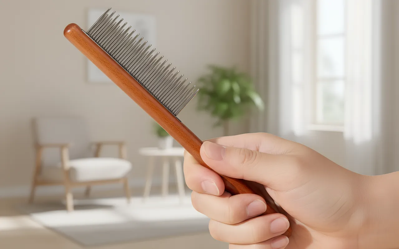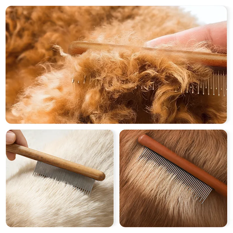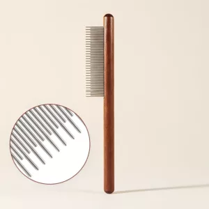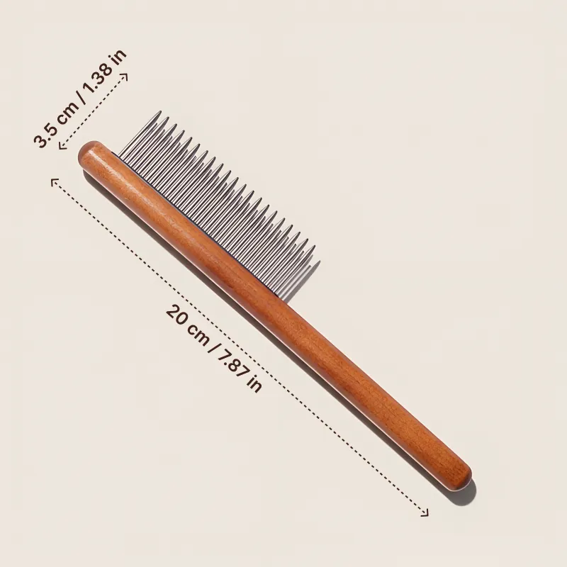 Få et rent hjem og glade kæledyr. Primdog kattekam glider let gennem pelsen og fjerner filtrede hår uden besvær. Træhåndtaget passer perfekt i hånden for daglig komfort. Sig farvel til hårtotter på møbler og tøj.