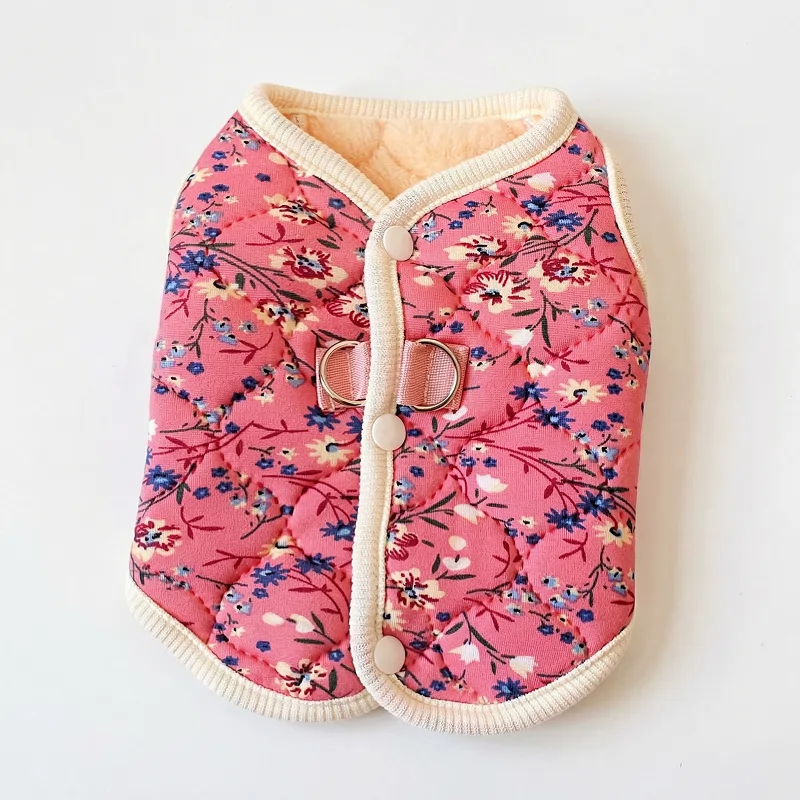 flower pet jacket, fleece dog jacket, button jacket for dogs, button up jacket
