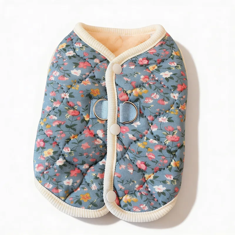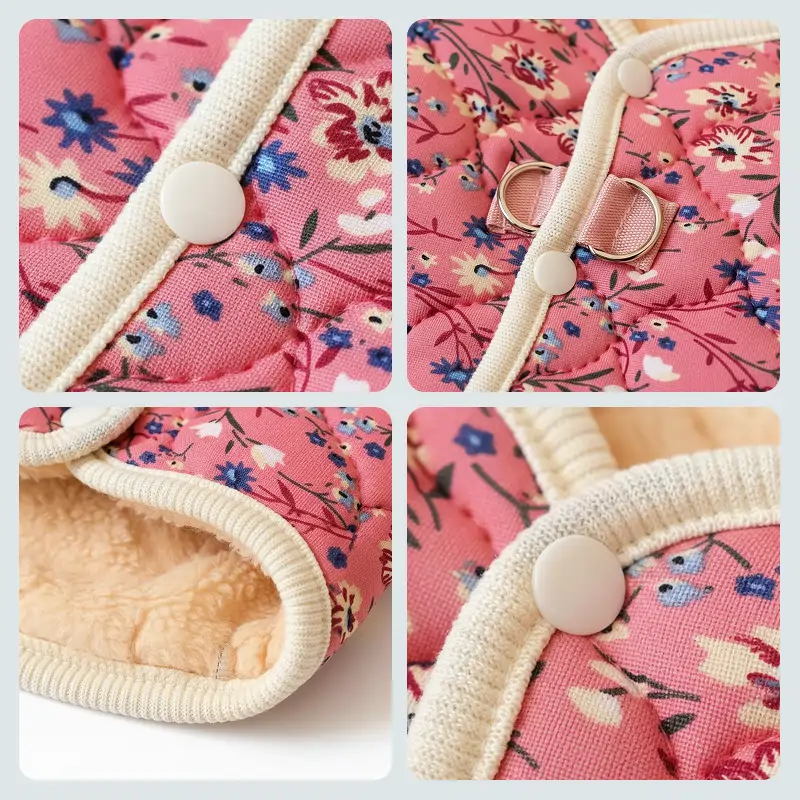 Primdog bringer komfort til kolde dage med gennemtænkt design. Blødt fleecefor hjælper hunden hurtigt med at føle sig tilpas udendørs. Hver jakke har sikre knaplukninger for nem påklædning. Smukke blomstermønstre spreder charme på hver gåtur.