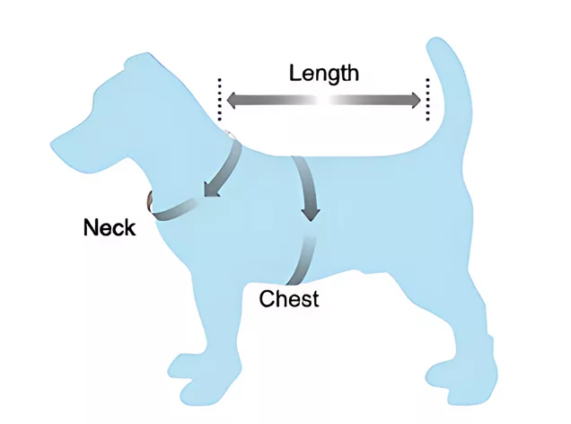 - 1. Mål dit kæledyrs ryglængde fra bunden af halsen til halen.