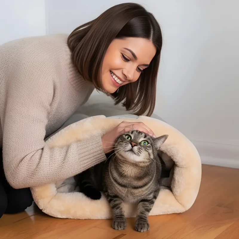 Ethvert kæledyr fortjener et fredeligt sted at hvile sig. Primdog kattesoveposen giver sikkerhed og varme hver dag. Katte elsker hurtigt at trække sig ind i det bløde, plysset indre. Denne rede holder din ven rolig og tryg gennem de kolde måneder.
