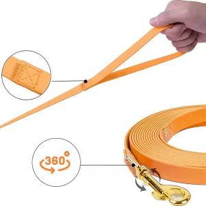 Jeg kan godt lide, at karabinen drejer rundt. Min hund elsker at snurre, og denne line bliver aldrig viklet sammen. Gør gåturene meget nemmere.