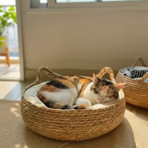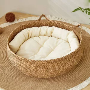 Sikke et skønt lille gemmested! Den bløde pude og naturlige kurv får min kat til at føle sig tryg, og den er let at holde frisk.
