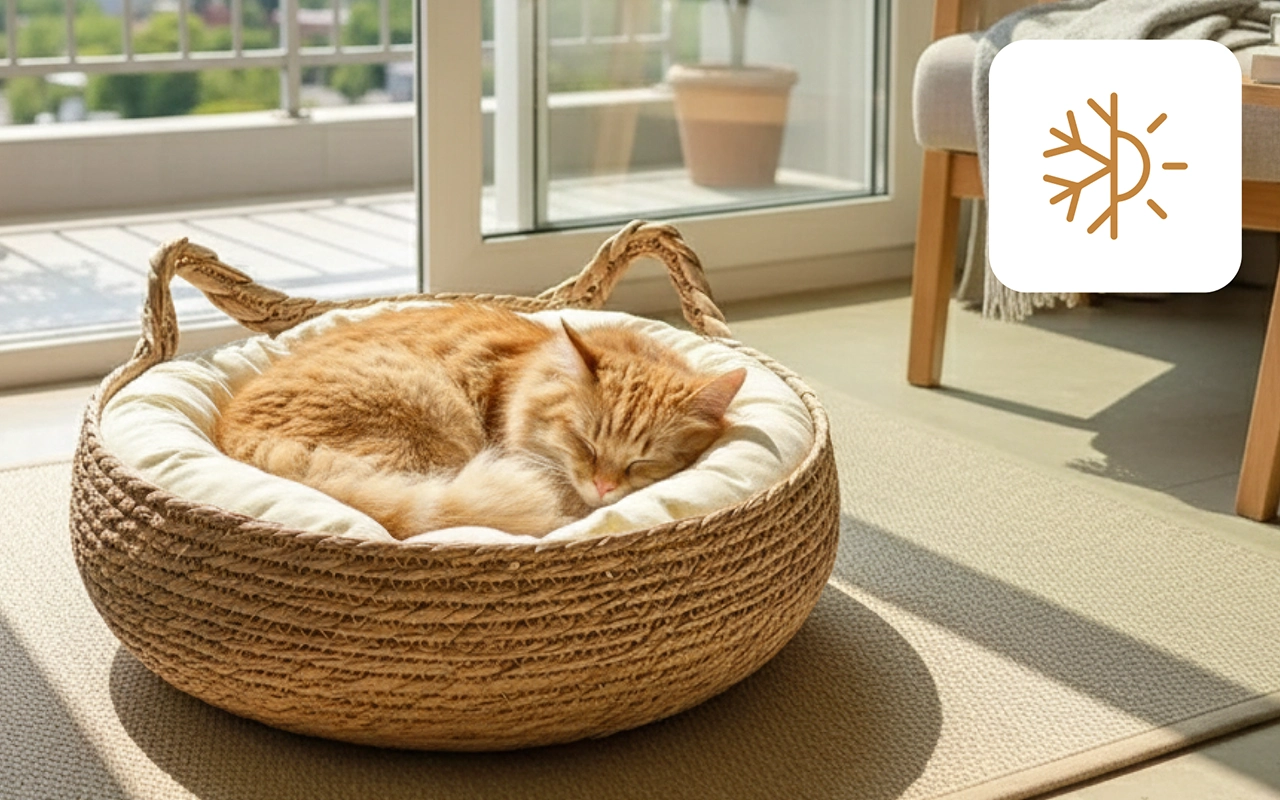 Elsker hvordan den holder sig kølig når solen er fremme og varm når det er køligt. Min kat har aldrig sovet bedre, og rengøring er super nemt.